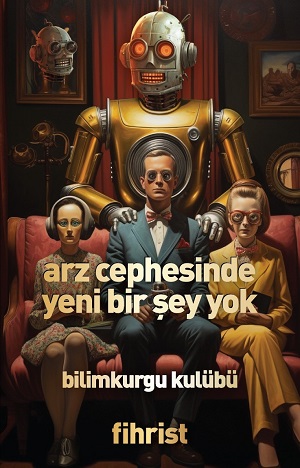 2. yüzyılda yaşayan Samsatlı Lukianos, dönemin tarihçileriyle alay edeyim derken farkında olmadan dünyanın bilinen ilk bilimkurgu öyküsüne imza attı. Öyküsünde hem Ay’a yapılan bir yolculuğu kurguluyor hem de dünya dışı uygarlıklardan dem vuruyordu. Ortaya çıkışındaki rolüne uygun olarak mizah ve yergi, bugün de bilimkurgunun ayrılmaz bir parçası olmayı sürdürüyor. Öteden beri mizahçılar, gerçeğin herkesçe bilinen ama atlanan detaylarını öne çıkarıyor, bizi yine bize anlatıyor. Güldüğümüz şeyler, düşünsel değişimlerin ve teknolojik yeniliklerin etkisiyle sürekli dönüşüp şekilleniyor. Dolayısıyla teknolojinin hayatımızı çepeçevre kuşattığı günümüzde, bilimkurgusal söylemin mizahi dokunuşlarla buluşması eğlenceli olduğu kadar uyarıcı bir anlam da taşıyor. Arz Cephesinde Yeni Bir Şey Yok, Bilimkurgu Kulübü’nün üçüncü kısa öykü kitabı ve önceki derlemelerden farklı olarak bu kez bilimkurgu ile gülümsetmeyi amaçlıyor. Tek solukta okunabilecek eğlenceli kısa öyküleriyle pek çok bilimkurgu yazarı, 2021 yılında yitirdiğimiz Kadri Kerem Karanfil için bir araya geliyor. Ortaya da biraz hüzün ve bolca şamata çıkıyor. Kadri Kerem Karanfil’in de bir öyküsüyle yer aldığı Arz Cephesinde Yeni Bir Şey Yok, yaramaz bilimkurguculardan unutulmayacak bir muzır neşriyat örneği. Ali Okan Pandar • Bertuğ Kodamanoğlu • Emre Bozkuş • Emre Polat • Ezgi Özbek Şenel • Funda Özlem Şeran • Gökhan Cılam • Gurur Asi • İsmail Yamanol • Mehmet Kardaş • Metin Uçar • Murat K. Beşiroğlu • Müfit Özdeş • Münevver Uzun • Nur İpek Önder Mert • Özge Arıkal Gönül • Özlem Ertan • Öznur Babur • Ruhşen Doğan Nar • Sadık Efe Sarıtunalı • Selim Erdoğan • Seran Demiral • Sercan Leylek • Serdar Yıldız • Sinan İpek • Tevfik Uyar • Tuğrul Sultanzade …ve KADRİ KEREM KARANFİL
